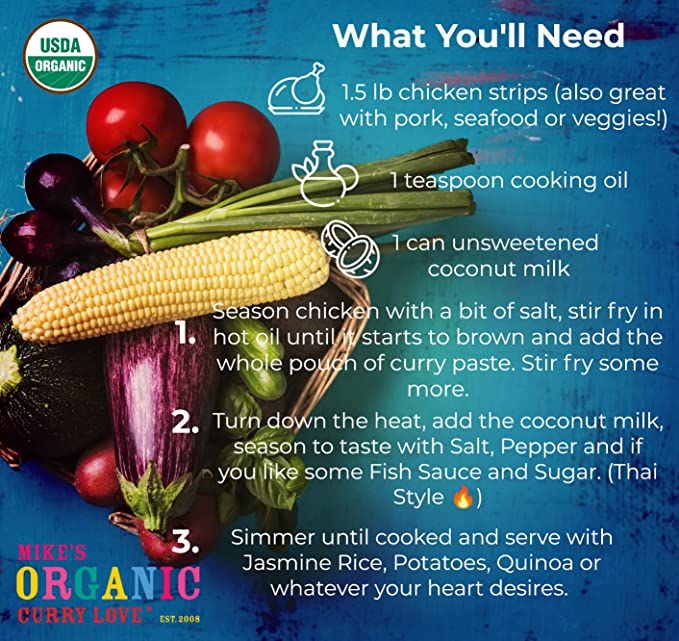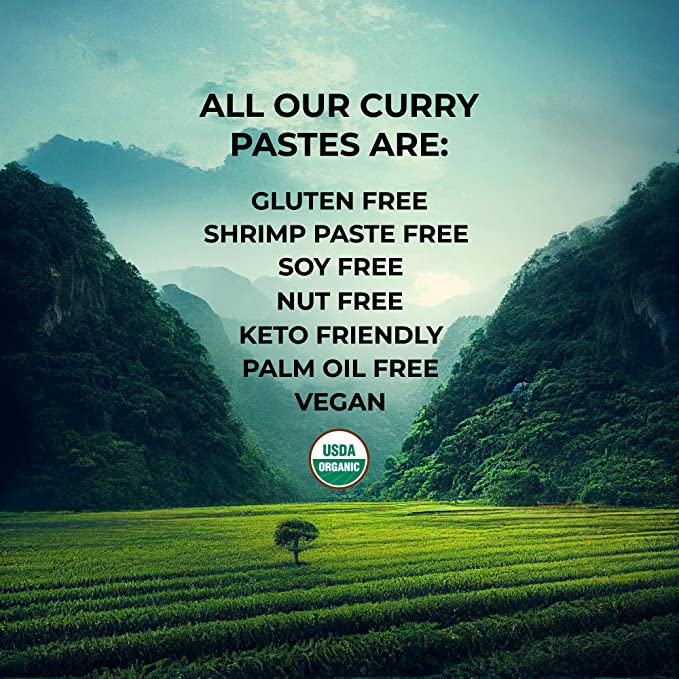 Our Bestseller Variety Pack! This flavor-packed box includes Red, Green, Yellow, Penang and Massaman Curry Pastes. Get ready to become a curry connoisseur! We're committed to sourcing the freshest USDA Organic ingredients from Thai Farmers. Cooking with these pastes is super easy. Just add your choice of protein or veggies and simmer with creamy coconut cream.Â